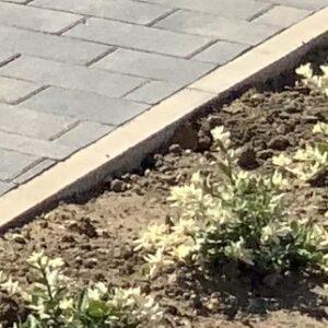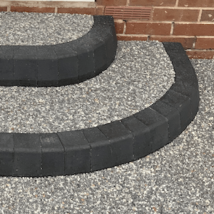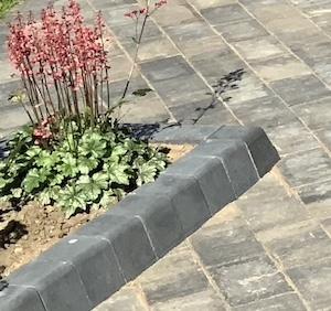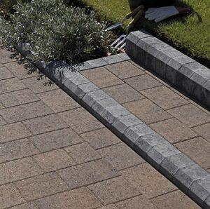 Slim, flat-topped concrete edging designed for strength and often used with block edging. Provides a clean, minimal boundary, often used where the driveway meets a lawn.